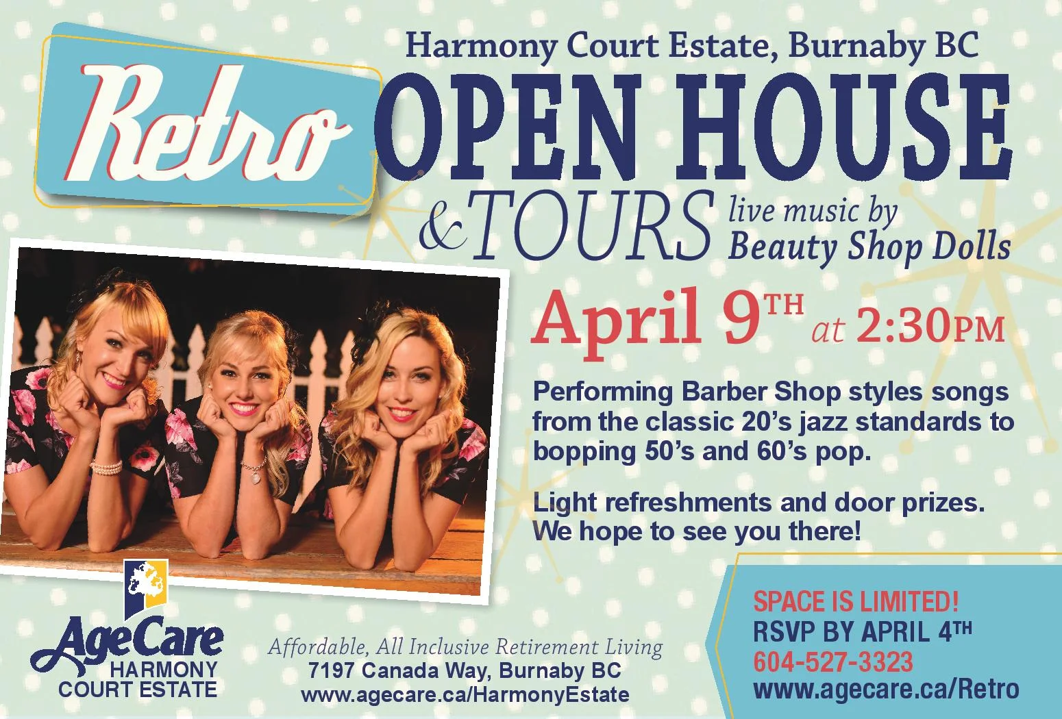 OPEN HOUSE AT HARMONY COURT - RETRO THEME Saturday, April 9, 2016 2:30 PM 5:00 PM 14:30 17:00 Google Calendar ICS